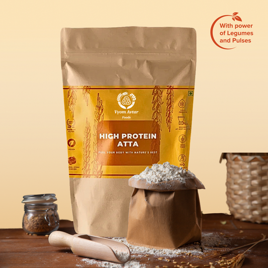 What is High Protein Atta? High Protein Atta is a protein-rich flour crafted by cold-milling premium Sharbati wheat and blending it with plant-powered legumes like chickpeas, moth beans, green moong,...